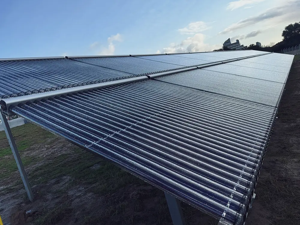 Wir liefern für unseren Kunden ein speziell für den Röhrenkollektor SPX5 entwickeltes Montagesystem. Somit leisten wir einen wichtigen Beitrag zur Energiewende und unterstützen den Ausbau nachhaltiger Energiequellen. Im Oktober hat die Baustelle in Stralsund begonnen. Bis Ende April werden die Arbeiten unseres Teams vor Ort abgeschlossen sein. Ab Mitte 2025 soll die Solarthermieanlage dann in Betrieb genommen werden und jedes Jahr rund elf Gigawattstunden erneuerbare, CO2-freie Wärme produzieren.