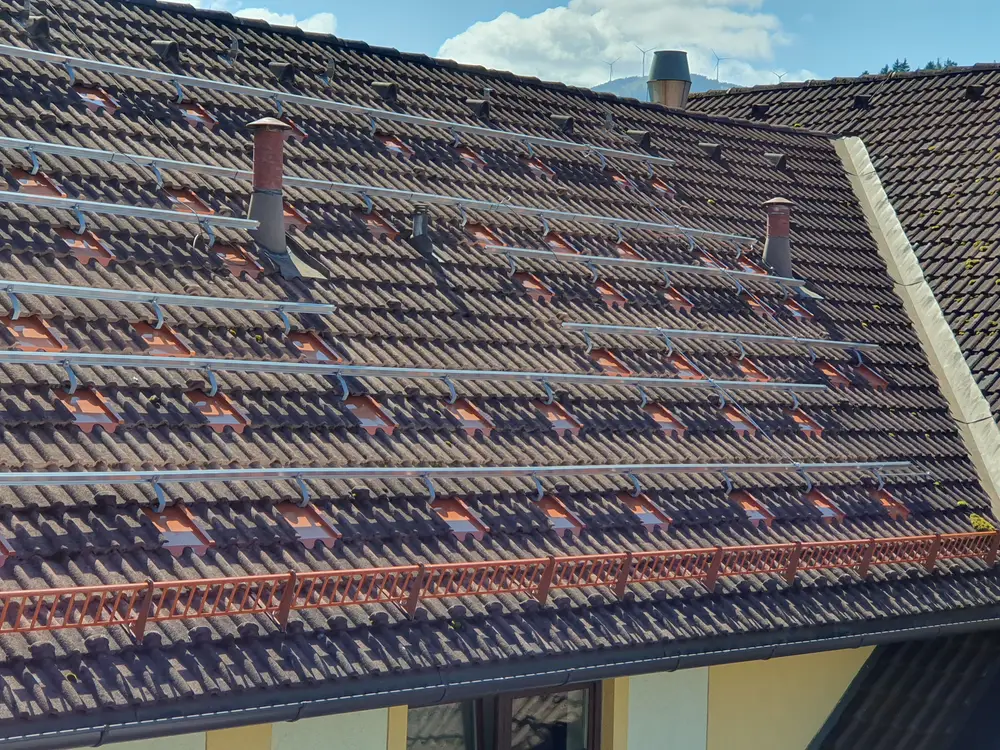Bei einem Schrägdach-Projekt in Österreich kam unsere Unterkonstruktion der VSM-Serie mit Metallersatzziegel Bramac Classic und der Montageschiene 5527 zum Einsatz. Diese Lösung ermöglicht eine fachlich korrekte und saubere Montage, ganz ohne Bearbeitung der vorhandenen Ziegel. Verbaut wurden rund 2.500 Dachhaken sowie über 2.600 Meter Montageschiene, was die Dimension des Projekts verdeutlicht. Durch das optimierte System konnte die Montagezeit um etwa 30 % reduziert werden – ein klarer Vorteil in Bezug auf Effizienz und Wirtschaftlichkeit. So zeigt sich, dass selbst auf bestehenden Ziegeldächern moderne Photovoltaik-Anlagen mit der passenden Unterkonstruktion schnell, stabil und langlebig realisiert werden können.