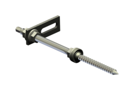 Stockschraubenset waagerecht mit EPDM Dichtgummi und Haltplatte (Langloch für M10). Zur direkten Befestigung von Aufständerungsdreiecken oder varista® Montageschienen. Verfügbar sind die Stockschrauben-Set waagerecht in folgenden Abmessungen: