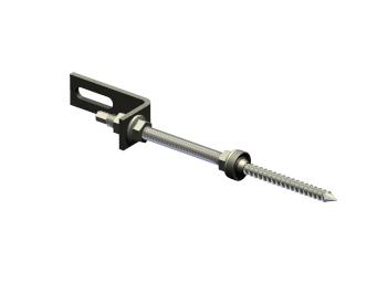 Stockschrauben-Set senkrecht mit EPDM Dichtgummi und Stahlwinkel (Langloch für M10). Zur direkten Befestigung von varista® Montageschienen. Verfügbar sind die Stockschrauben-Set senkrecht in folgenden Abmessungen: